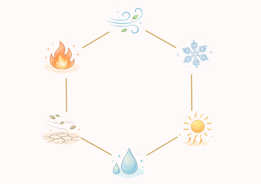 自然界には気候変化を指す六気(風・寒・暑・湿・燥・火)と呼ばれるものがあります。