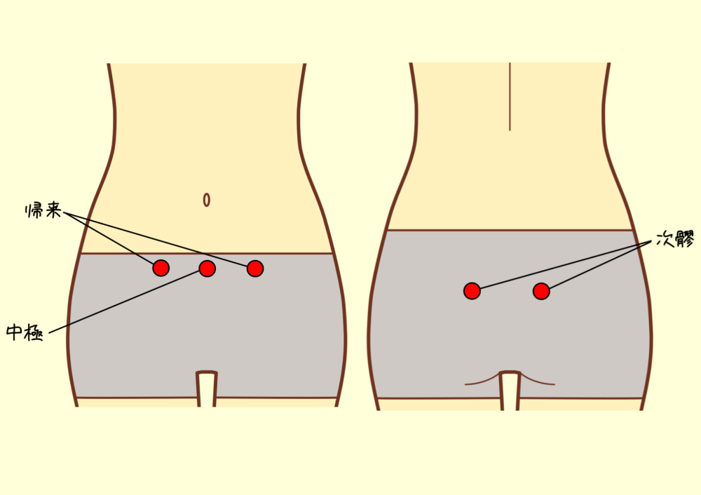 子宮(女子胞)の痛みを止めるためのツボを使います。